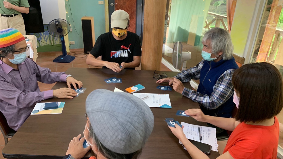 在志工事前分成4組下,理事長先向大家解說Q卡共有48張,除2張通用卡(即持通用卡者可不限卡牌上問題,得自由分享自己想要表達的問題)外,其餘46張卡牌上,均載有人生觀、生命觀、醫療、照護及身後事務等面向之各種特定問題。透過發牌、換牌過程,每人最終可持有所想要分享之特定問題的5張卡牌,而就各該5張卡牌上所載問題,予以表達分享本身想法予同遊者,而同遊者也可就別人的表達,交流分享自己的想法。藉此卡牌遊戲方式,令同遊者得以較輕鬆的方式,自然自在開啓對話交流有關死生議題的想法。